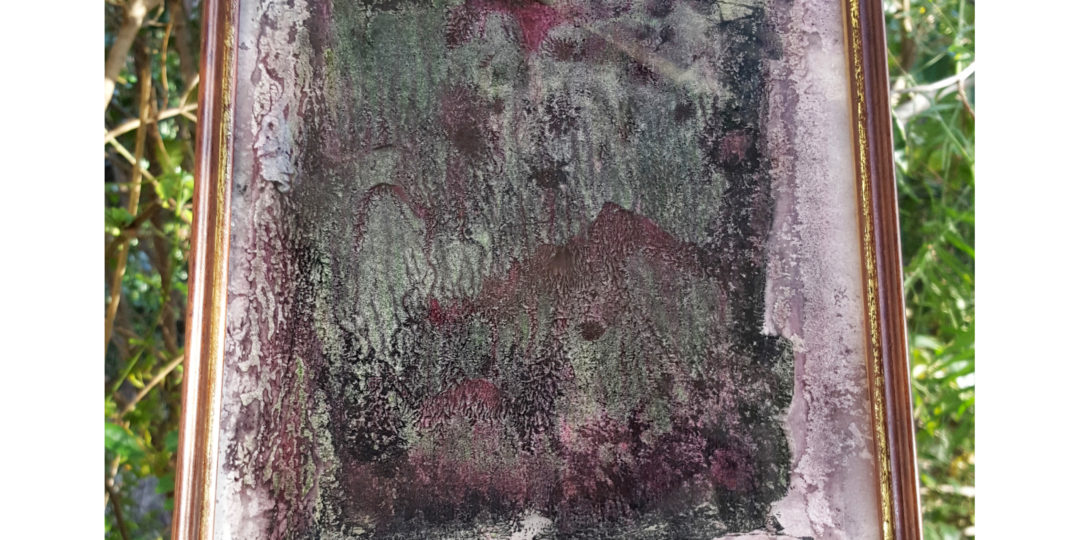 Aquarelle & Acrylique sur grammage 300g ~ Encadré Bois format 20×25 ~ (collection privée) Pendant que les hommes deviennent fous, je dessine des mondes où ces derniers sont pétrifiés et où la nature reprend ses droits.